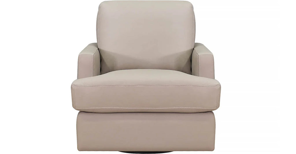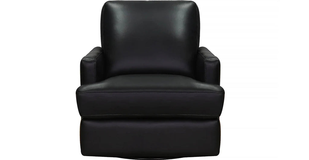 Top-grain leather is upholstered on the seating areas and armrests. Split-grain leather is used on the sides and back