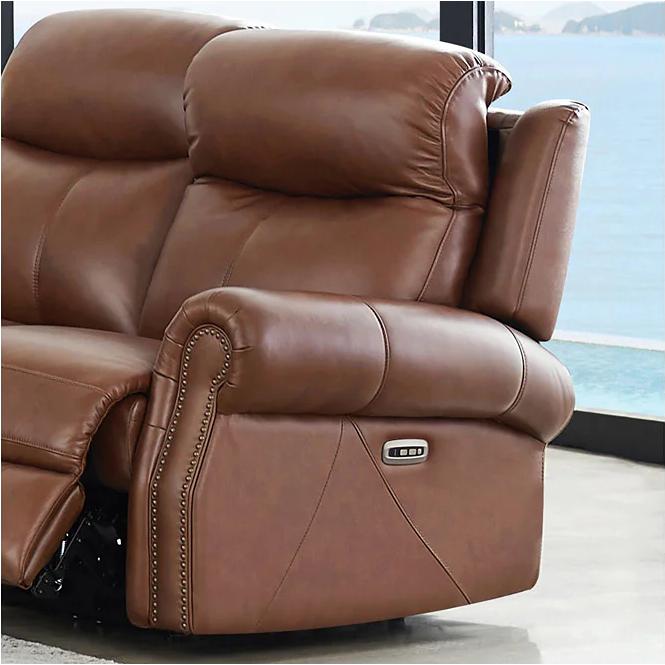 • Top grain leather is upholstered on seating areas and armrests