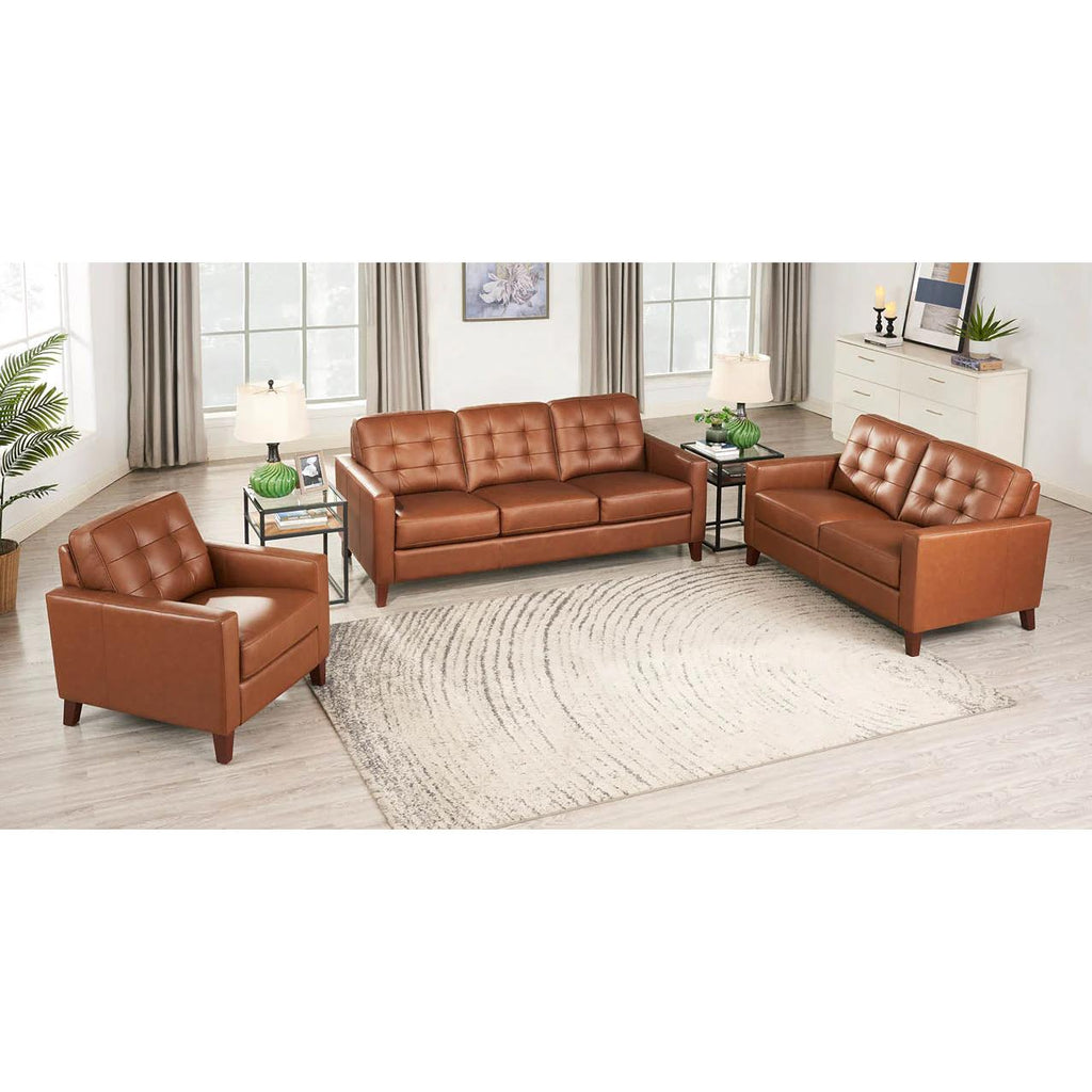 Amax Leather Aiden Stationary Leather Match Loveseat Aiden Loveseat - Nutmeg