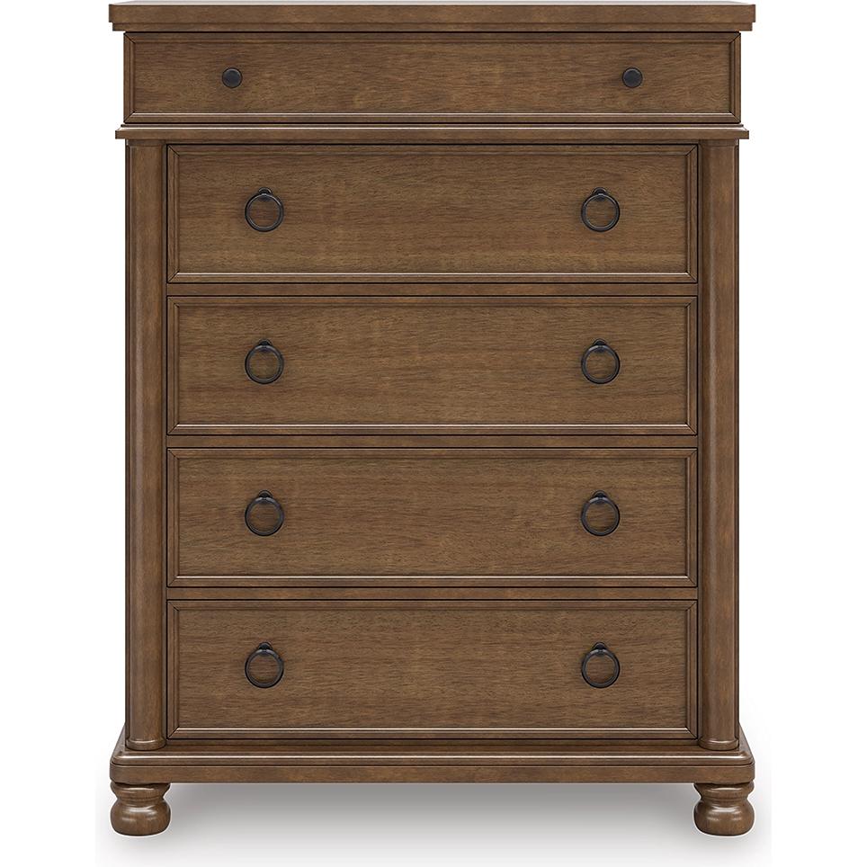 • 5 smooth-gliding drawers with fully finished interiors, French/English dovetail construction and heavy-duty ball-bearing side glides