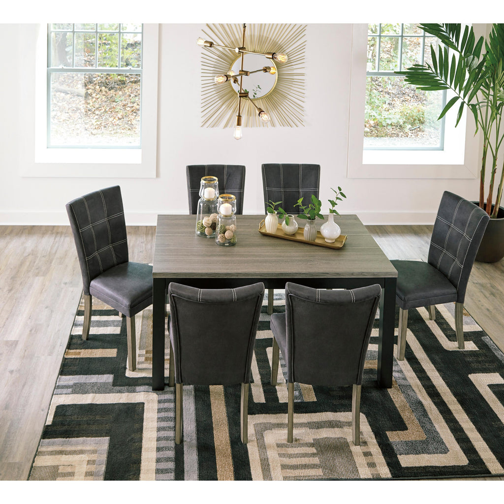 • Cushioned seats with faux leather upholstery