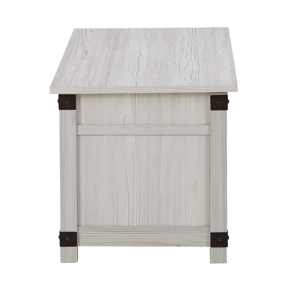 • Engineered wood with decorative laminate in a whitewashed color