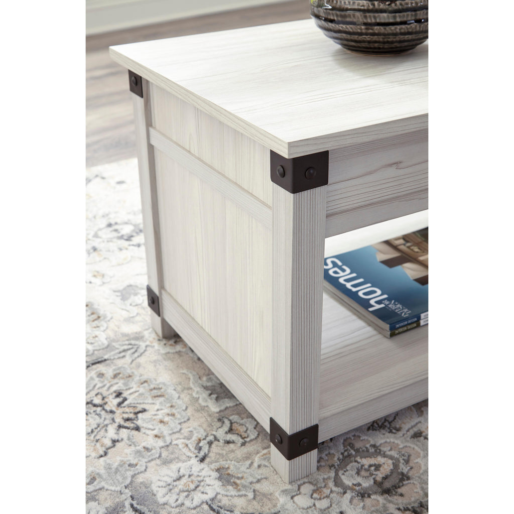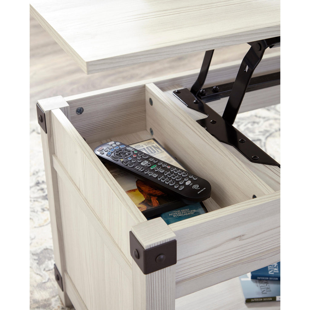 • Lift top with storage trays underneath