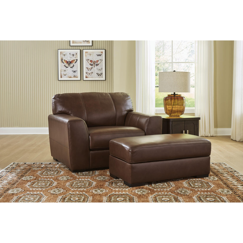• 100% top grain leather covers the cushion top; skillfully matched faux leather covers the remaining areas
