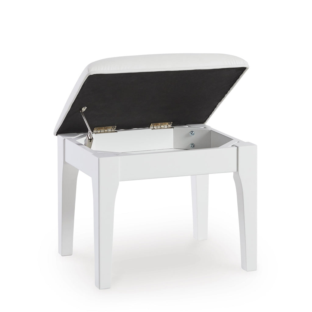 • Hinged seat reveals storage compartment