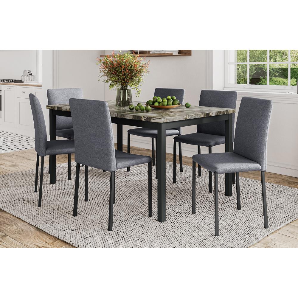 Transform your dining space into a sophisticated haven with this unique dining set, designed to impress and delight. Raise the... Transform your dining space into a sophisticated haven with this unique dining set, designed to impress and delight. Raise the sophistication of your dining experience with our unique dining set. This set comes with the table and 6 chairs. View more