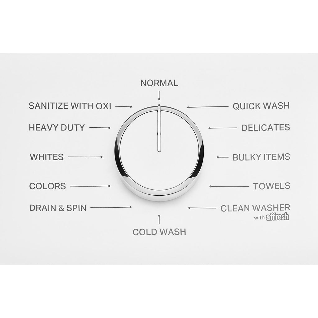 Bulky Items; Clean Washer with affresh; Cold Wash; Colors; Delicates; Drain & Spin; Heavy Duty; Normal; Quick Wash; Sanitize with Oxi; Towels; Whites